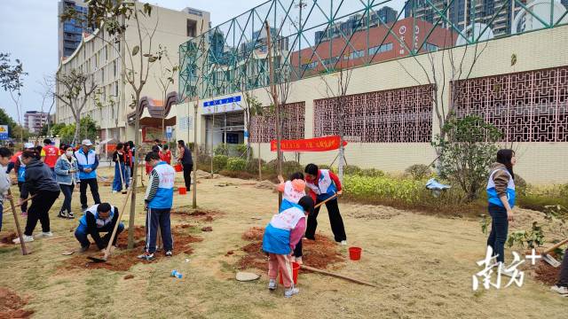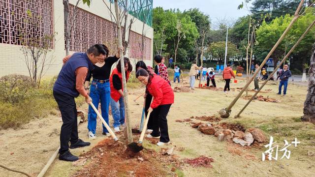 2月16日上午,梅江区江南街道红光社区与元城小学开展“助力‘百千万工程’ 共建‘元城悦读林’”结对共建植树活动。梅江区委常委、区委宣传部长廖文玉,江南街道党工委书记林峰,红光社区党员干部、社区群众和元城小学师生等共50多人参加活动。