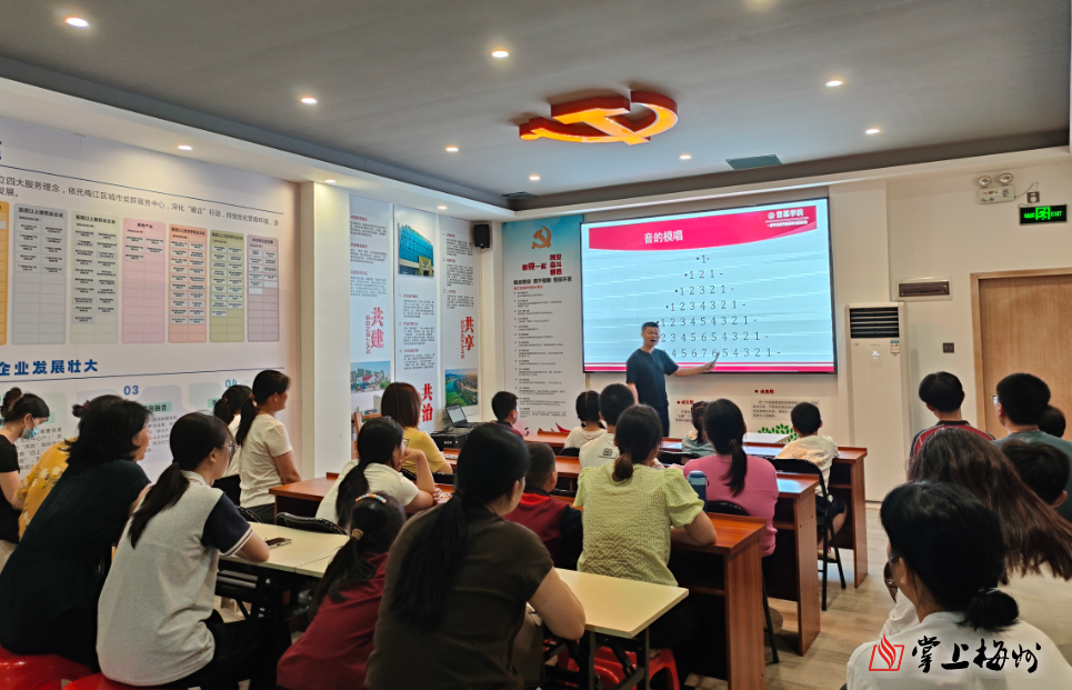 掌上梅州讯5月23日,由梅江区江南街道路心社区党委、榕树塘社区党委、梅州嘉和琴行党支部联合主办的“乐韵启新,艺彩飞扬”音乐分享主题活动之认识简谱、基本节奏型及在歌曲中的实际运用,在梅江区城市党群服务中心成功举办。活动特邀专业音乐教师赖慰主讲,吸引了来自社区的40余名音乐爱好者参与,现场洋溢着浓厚的艺术氛围。