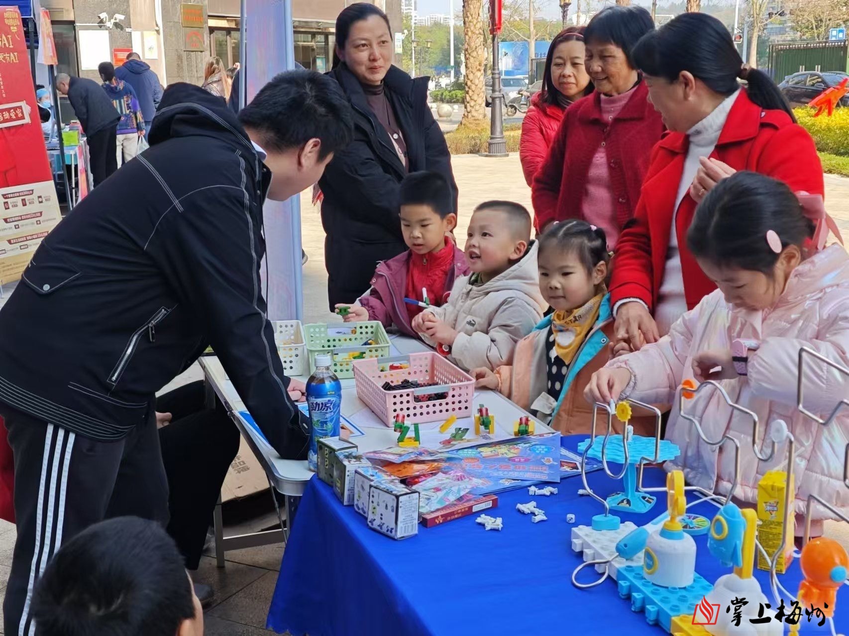 1月20日上午,恒大御景半岛一期群福社区党群活动中心门口热闹非凡,由梅江区科协、群福社区党委、群福社区妇联携手慧鱼国际科创中心、梅江区客创教育培训有限公司、超能星球运动馆等单位共同举办的“探索科技奇妙之旅”活动在此欢乐开启,活动同样还融入了迎新年挥春活动,为居民们带来了一场科技与文化盛宴。