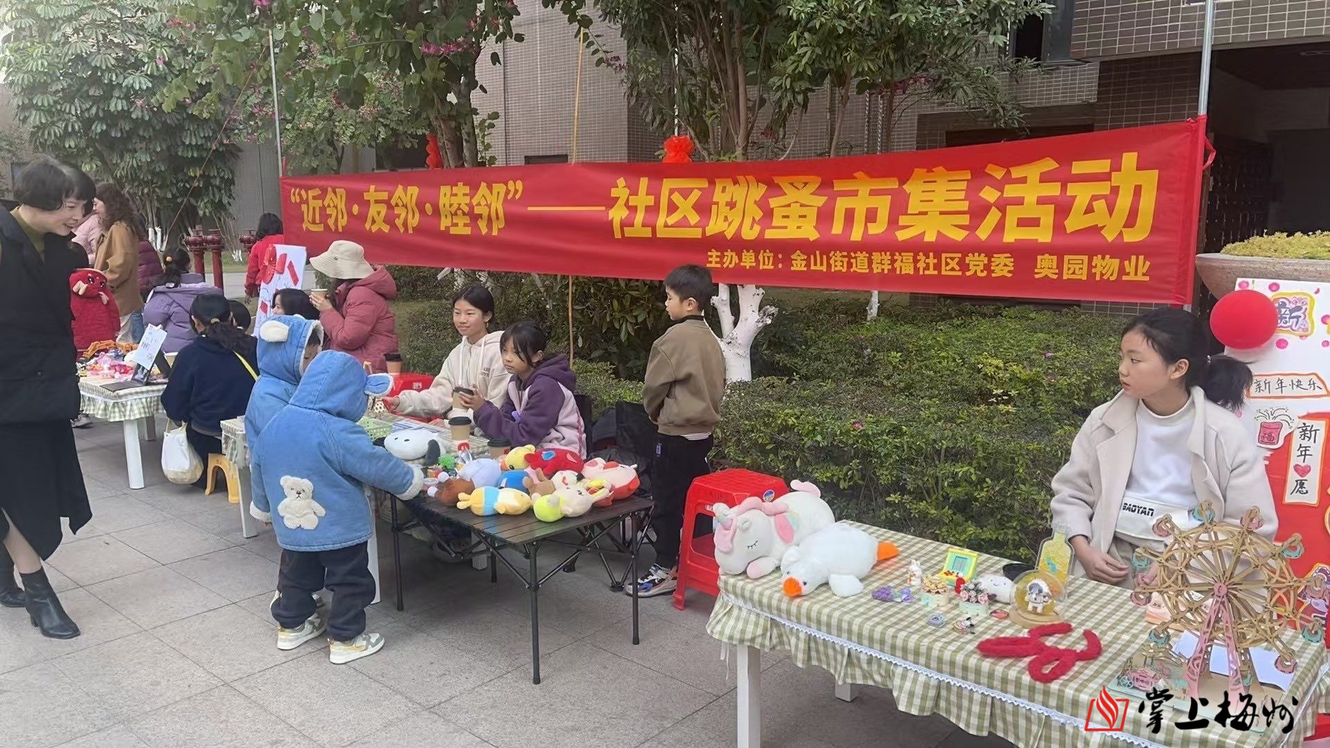 1月18日上午,梅江区金山街道群福社区联合奥园物业在梅江天韵开展“近邻·友邻·睦邻”——社区跳蚤市集活动。