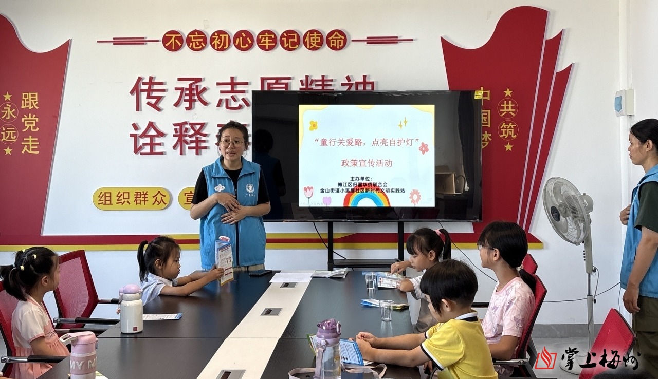 小溪唇社区新时代文明实践站联合梅江区侨联、金山街道社工站和街道妇联开展了“童行关爱路,点亮自护灯”政策宣传活动,通过讲解和宣传困境儿童关爱保护政策,进一步提升对政策的认知度和应用能力。