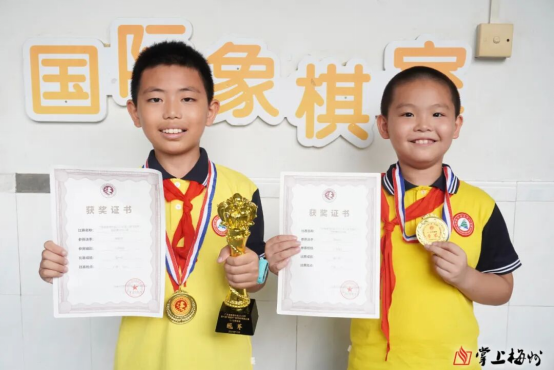 近日,在广东省象棋协会 2025年第六届“荣冠杯”国际象棋棋士赛中,该校五年级学生廖俊玮、三年级学生赖林威分别斩获15-无级别组冠军与季军,他们用亮眼成绩印证了这门课程的育人实效。