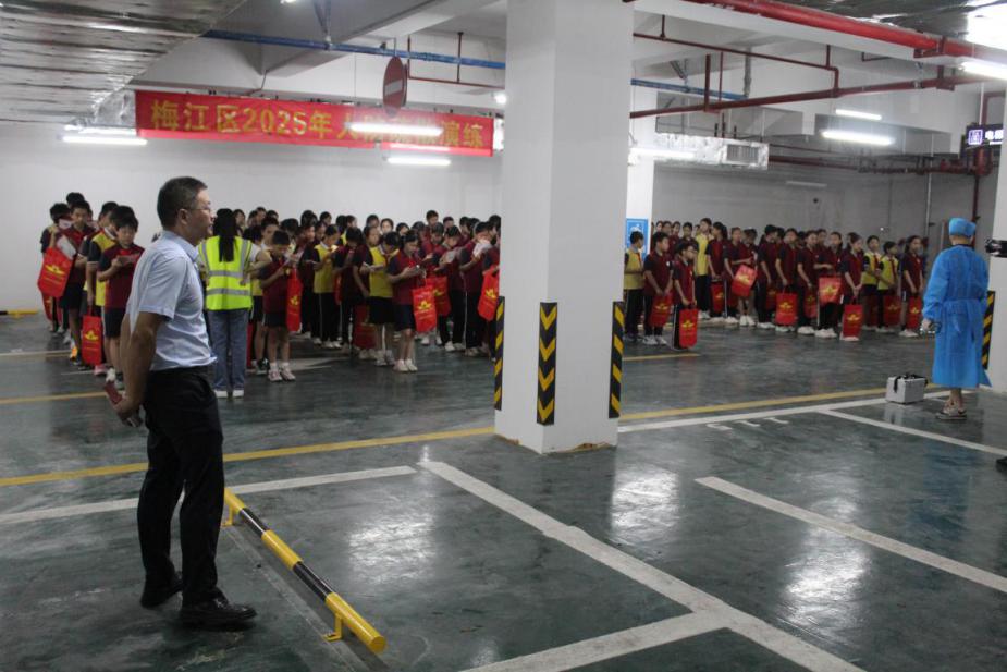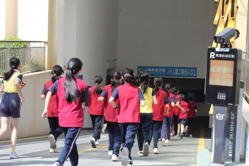 上午9时18分,随着梅州城区防空警报的鸣响,金山小学部分高年级师生按照《梅江区2025年人防疏散演练实施方案》,3分钟内紧张、迅速、有序地从各自教室疏散金山小学智慧停车场人防工程避险区。