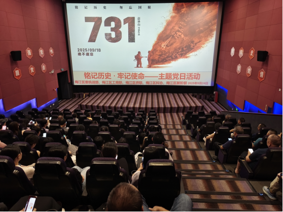 9 月24日,梅江区工商联组织开展“铭记历史·牢记使命”观看爱国主义影片《731》。市工商联副主席、区工商联主席黄敏,区委统战部副部长、区工商联党组书记黄媛,工商联会员企业家、青年企业家代表以及机关全体干部职工参加了此活动。