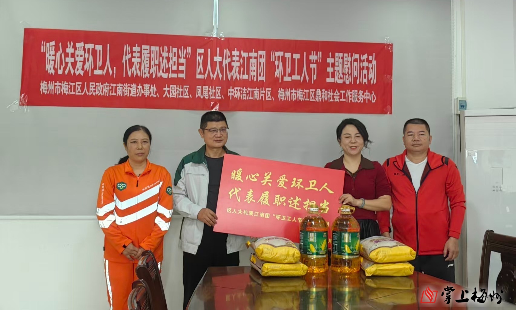 10月26日是广东省第32个环卫工人节。10月24日,梅江区江南街道组织区人大代表江南团开展“暖心关爱环卫人,代表履职述担当”主题活动,走访慰问在江南片区的一线环卫工人。大园社区、凤尾社区及鼎和社工参与了此次活动。