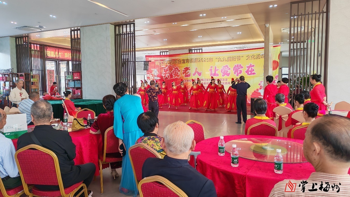 伴随着婉转动听的客家山歌,梅江区西阳镇白宫寿而康重阳文艺活动拉开序幕。随后,各村群众文艺队伍带来杯花舞、五句板等多样节目,浓厚的节日氛围与客家韵味交织相融,引得现场欢呼声与掌声不断。